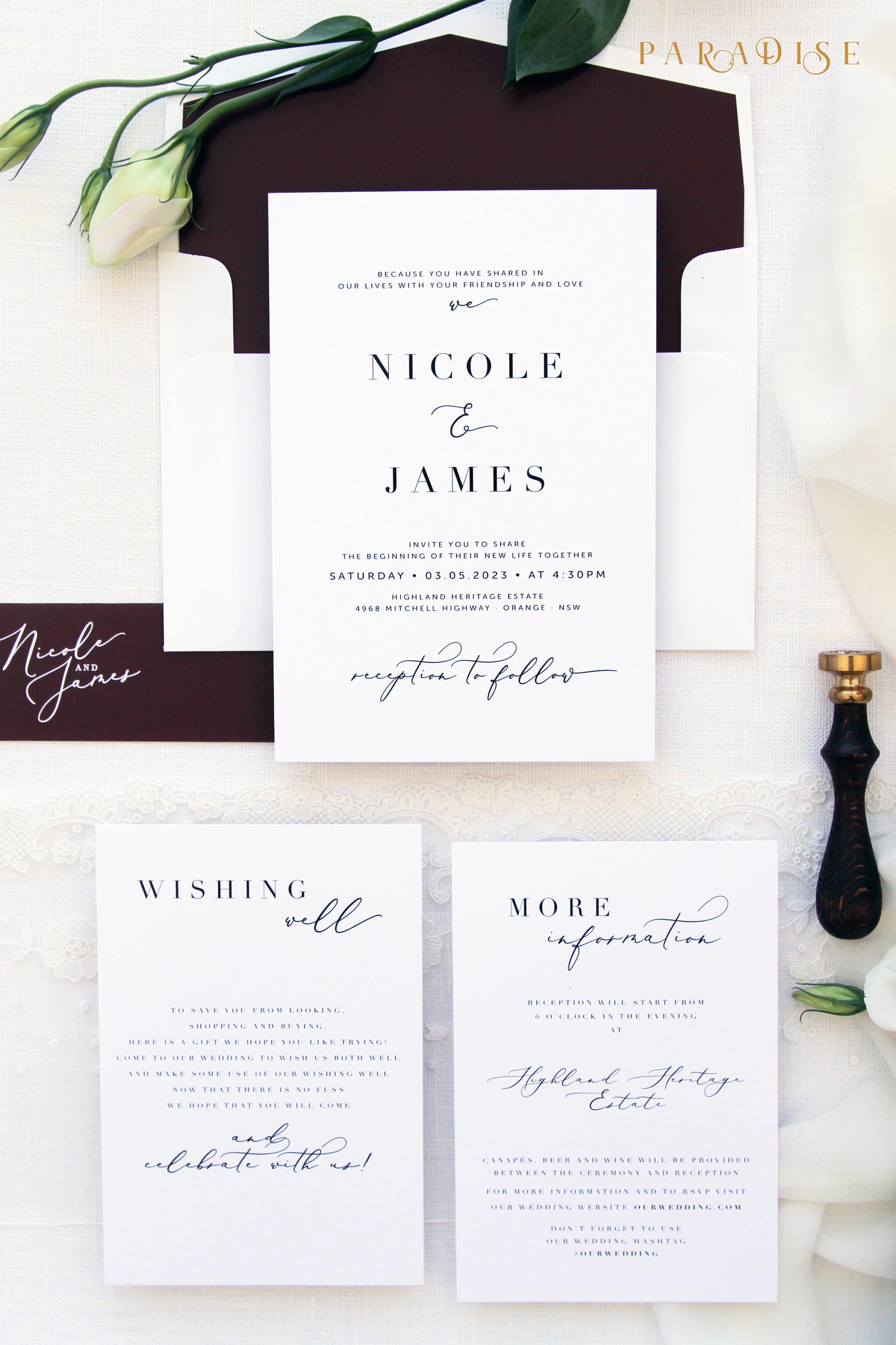 Madeleina Burgundy Wedding Invitation Sets Wedding Invitation Etsy