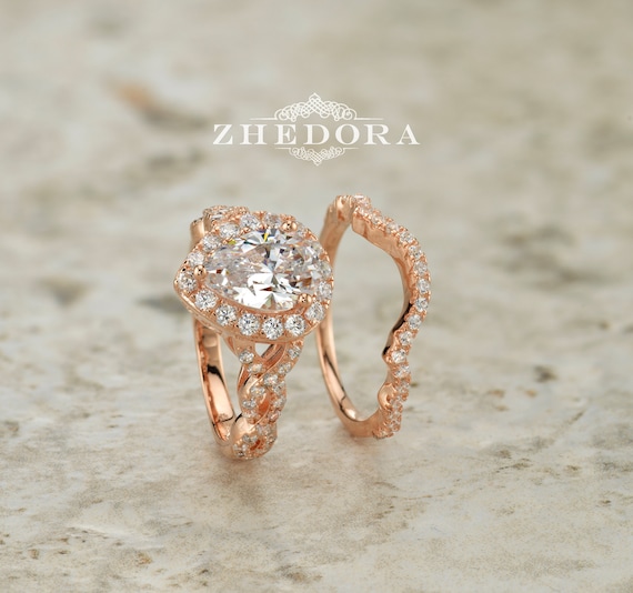 Pear Cut Engagement Ring Swirl Engagement Set Rose Gold Etsy