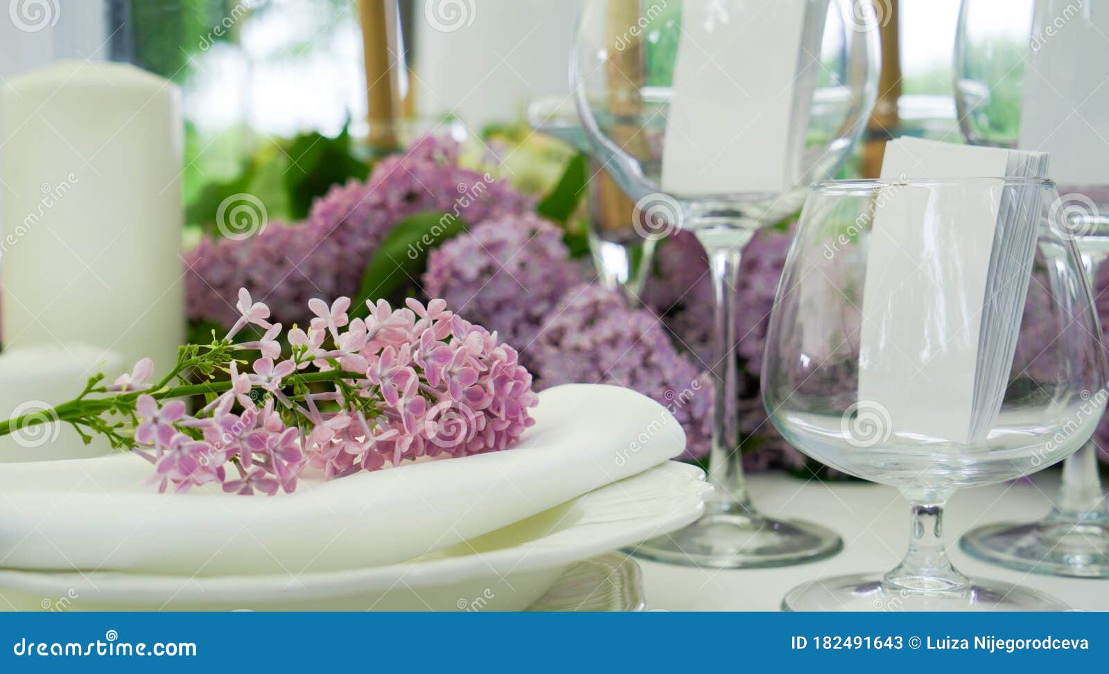 Festive Table Decoration Lilac Colours Wedding Stock Photo Edit