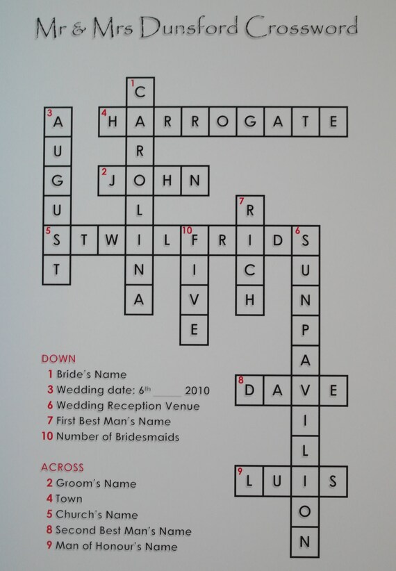 Printable Mr Mrs Crossword Poster Personalised Etsy
